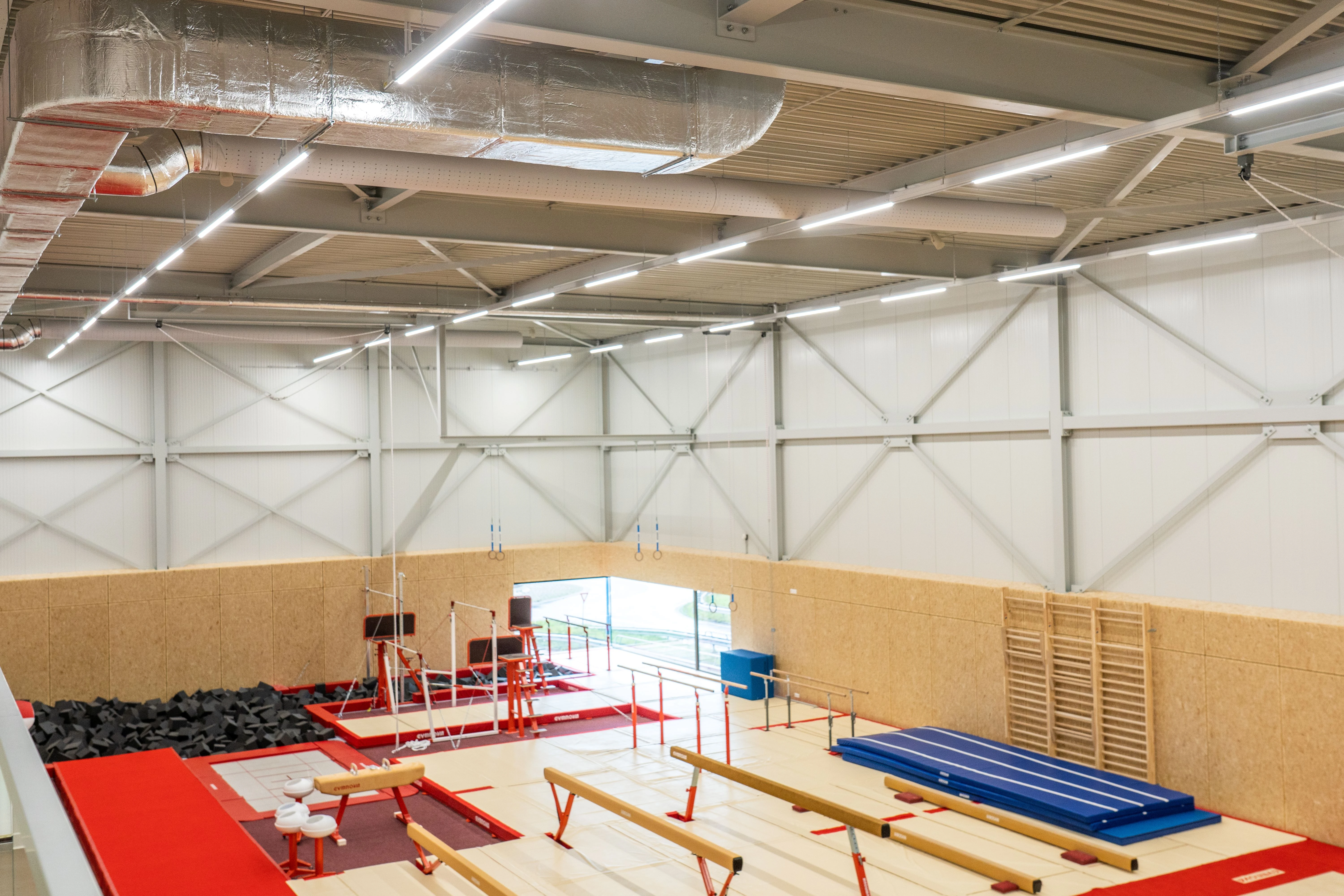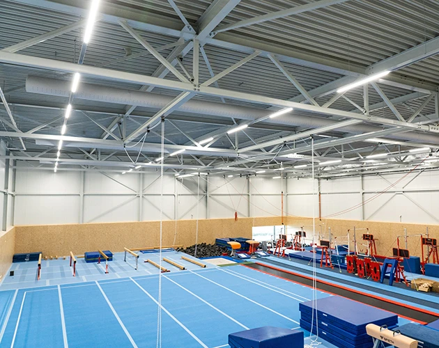 Gymworld ist die neueste Sportanlage in Zoetermeer. Die Trainings- und Wettkampfstätte bietet Platz für mehr als 4.000 Sportlerinnen und Sportler in den Bereichen Turnen, Gymnastik, Tanz und Freerunning. Für dieses schöne Gebäude lieferte Veko sowohl die Beleuchtung einschließlich der Notbeleuchtung für die Sporthallen als auch die Beleuchtung des Parkhauses.