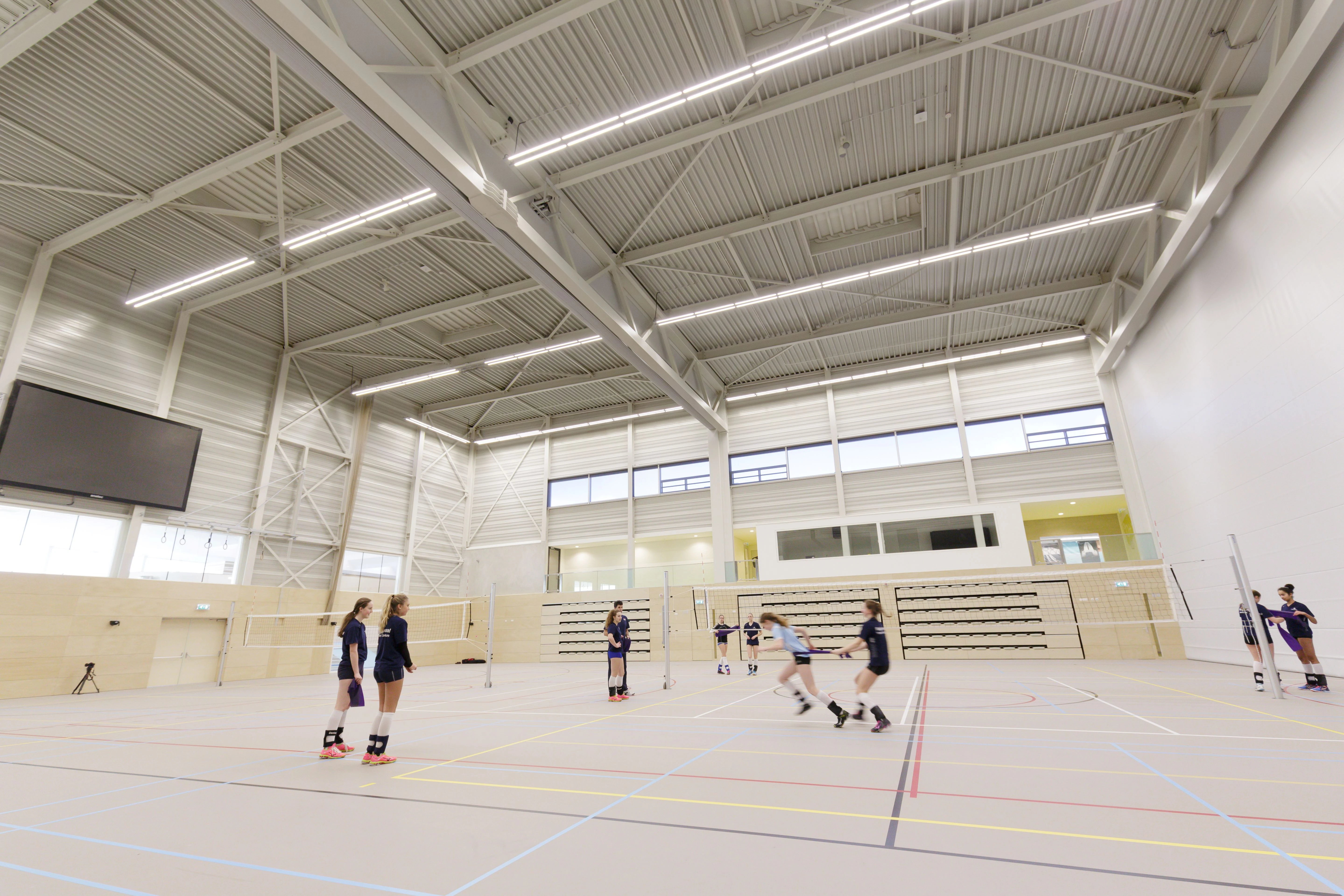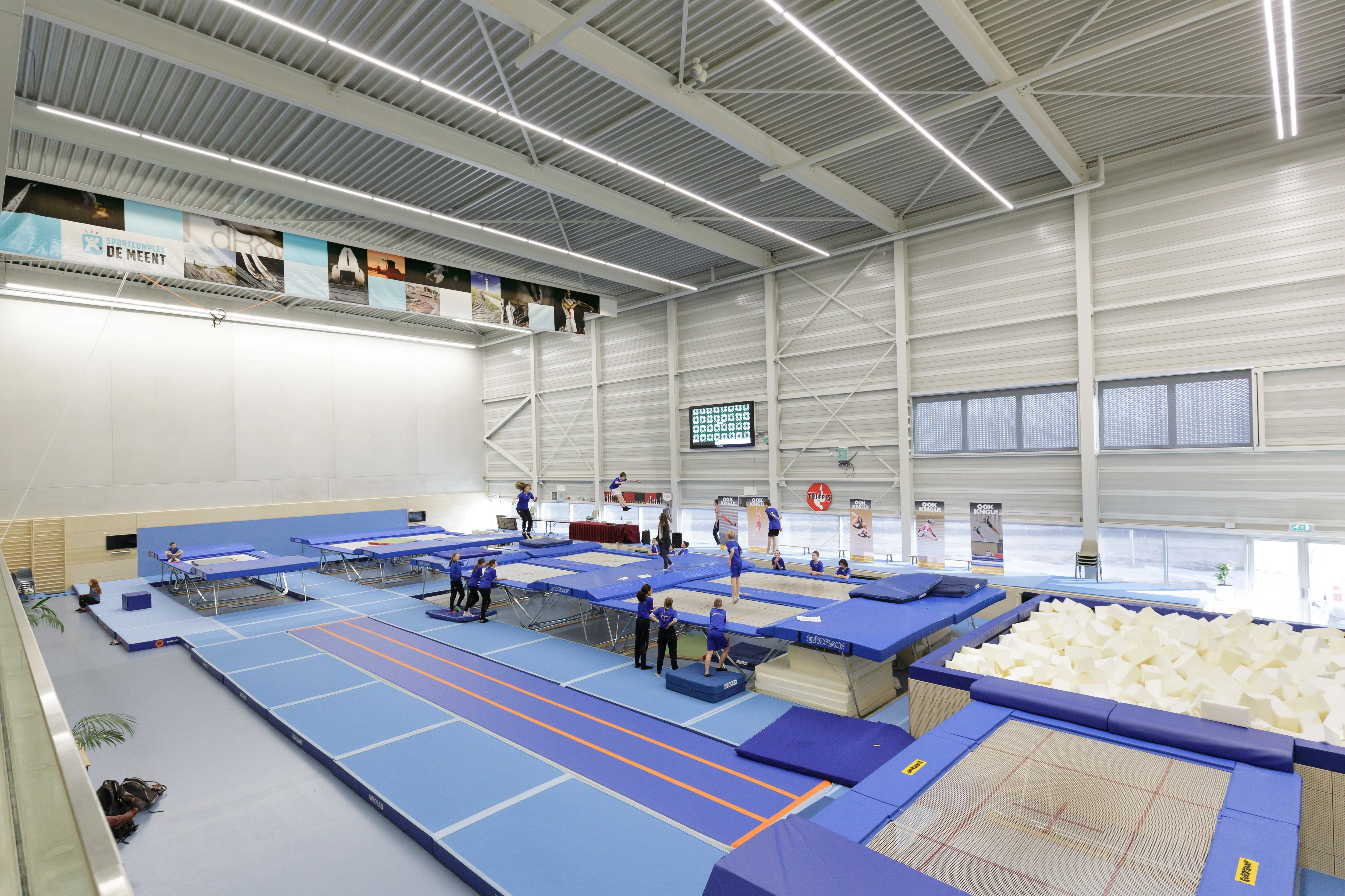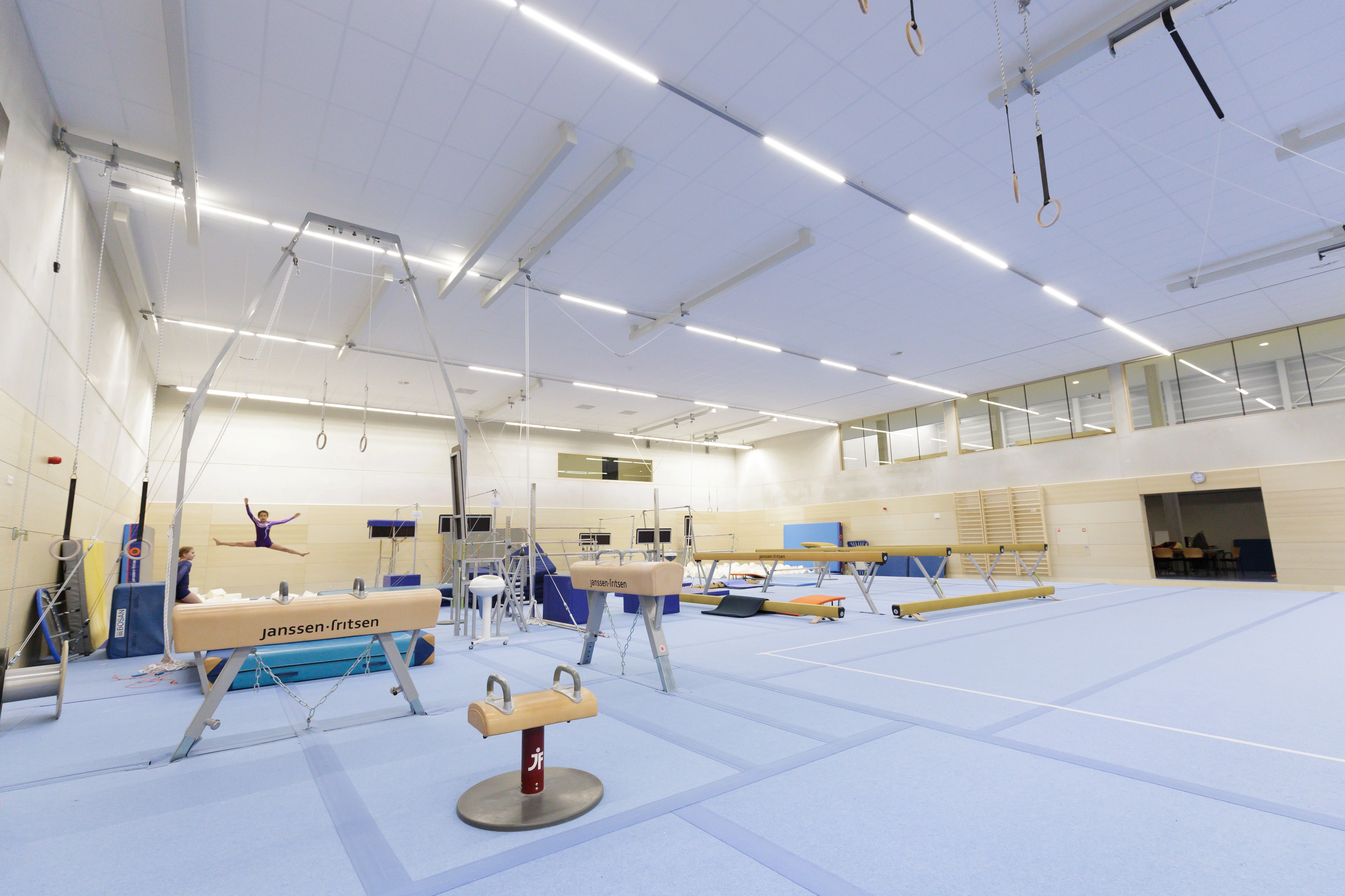 En la construcción de este nuevo centro deportivo se diseñaron nuevas salas deportivas y una pista de hielo renovada, todas ellas bellamente iluminadas por la iluminación LED de Veko. El equipo de montaje de Veko instaló en el pabellón central y en las zonas de camas elásticas, tenis de mesa, gimnasia artística y esgrima un total de más de 900 metros de iluminación lineal montada con 609 unidades LED.