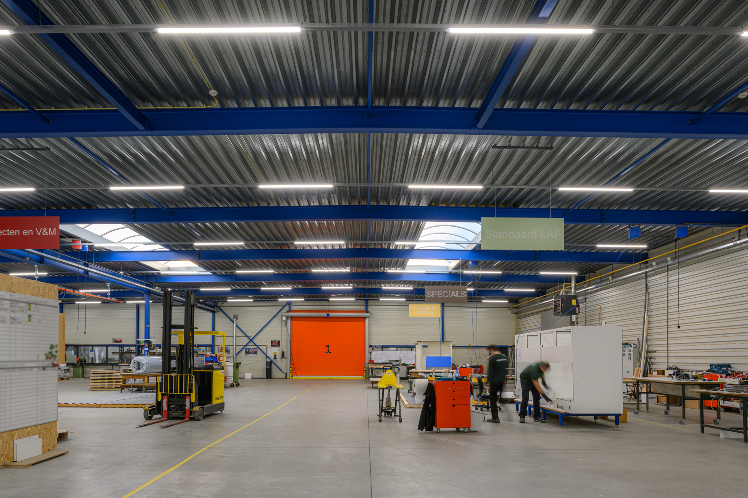 En noggrann tillverkningsprocess kräver även ett noggrant utvalt belysningssystem. Den befintliga byggnaden hade belysning från Veko med lysrör. Rick Schilder, projektledare på Interflow, kände till Veko Lightsystems och ville att ledningen skulle få uppleva skillnaden med modern belysning. En testinstallation monterades, varefter man beslutade sig för att byta ut den befintliga belysningen och även förse de nya utrymmena med linjär belysning från Veko. Man valde armaturen Magnus ”diffus”, utrustad med nödbelysning. Lagret, tillverkningslokalerna, lastnings- och lossningsområdet samt godsförrådet har fått ny belysning. Att byta belysningen på kontoren är den sista pusselbiten som behöver läggas.